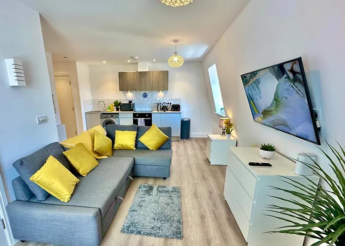 A microwave oven, an electric kettle and a refrigerator are also provided for your convenience. Bournemouth airport is at a distance of 0.5 km from apartment. Windsurfing and canoeing are among the activities that guests can enjoy on site or near Modern Flat 2 Mins Walk From Restaurants Bars Clubs & Beach! Apartment.